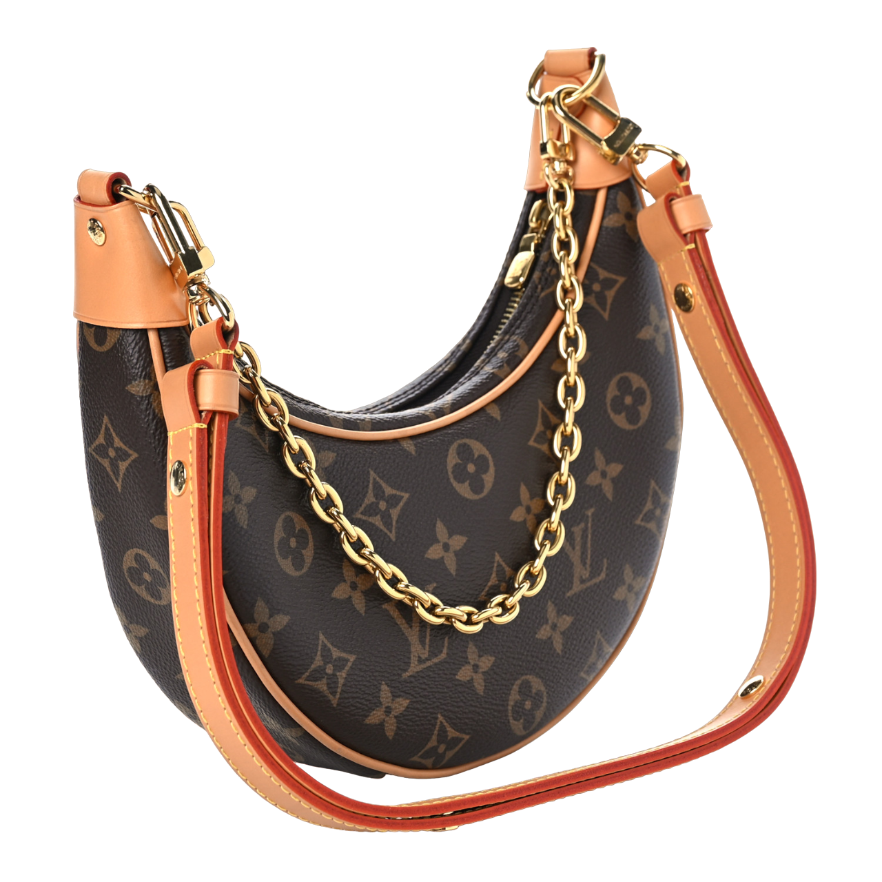 Criada por Nicolas Ghesquière para a Coleção Cruise 2022, a bolsa Loop é uma baguete meia-lua, inspirada na bolsa Croissant dos arquivos da Maison. Possui formato compacto e adequado ao corpo e uma corrente para carregar no ombro, além de uma alça de couro transversal.