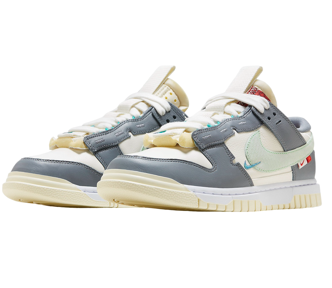 Acenda suas vibrações de dragão interior com o Nike Air Dunk Jumbo, uma homenagem ao Ano Novo Chinês e ao mítico Ano do Dragão. Este lançamento faz parte da coleção mais ampla da Nike, celebrando as festividades anuais de fim de ano. Com detalhes especiais na lateral, o mini-Swoosh azul se destaca na faixa Swoosh com material escama de peixe, combinado com a cor Vapor Green , criando uma obra-prima de moda única. Detalhes de ilhós ocultos e abas de espuma expostas proporcionam conforto e utilidade.