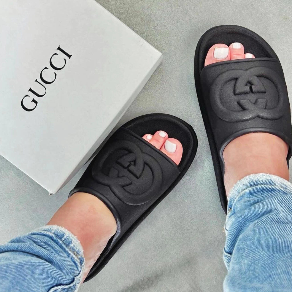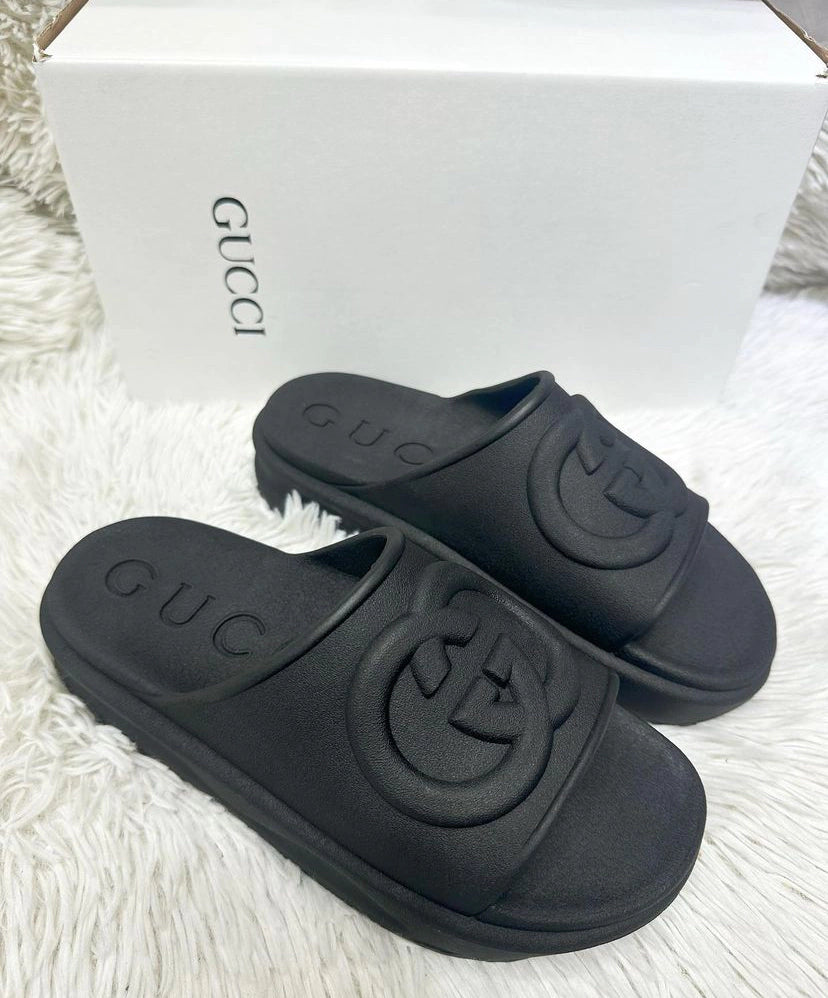 O diretor criativo Sarno retornou a Los Angeles, com a missão de transformar a grife nas novas tendências de moda. A campanha Love Parade, uma celebração de "seres encantados e profundamente livres que atravessam uma terra onde nem passado nem futuro residem". Falando sobre essa exploração da liberdade de expressão e descoberta do eu, este par de sandálias de borracha reimagina o G Interlocking como um detalhe em relevo.
