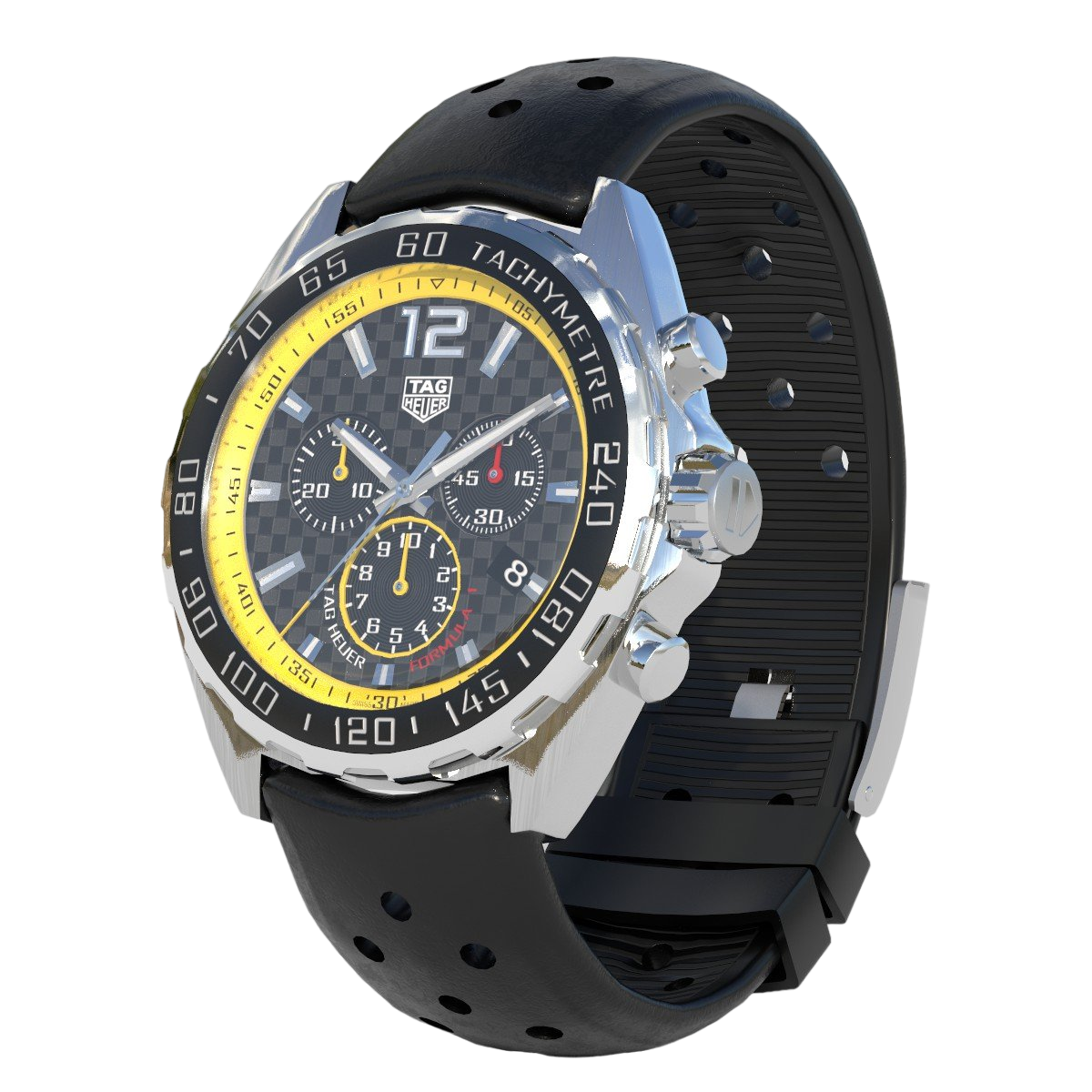 Elegante, veloz e ousado, este ícone automobilístico abre vantagem com o atrevido mostrador escuro em fibra de carbono e com o flange com escala de 60 segundos / minutos e a ponta do ponteiro central em amarelo claro contrastante. Um relógio que mantém a mão do piloto firme no volante e o carro à frente.