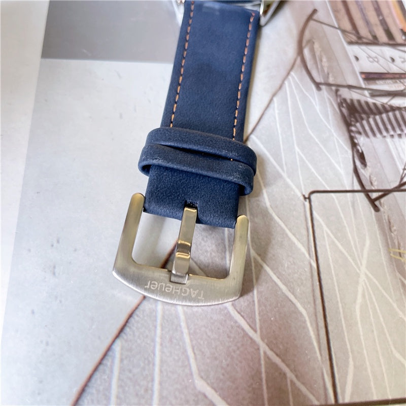 Para reforçar a estética desportiva, o relógio é equipado com uma confortável correia azul em pele pespontada a laranja, ou com uma pulseira de aço 904 inoxidável com uma durabilidade imbatível. Duas opções chamativas que se encaixam em qualquer estilo e situação.